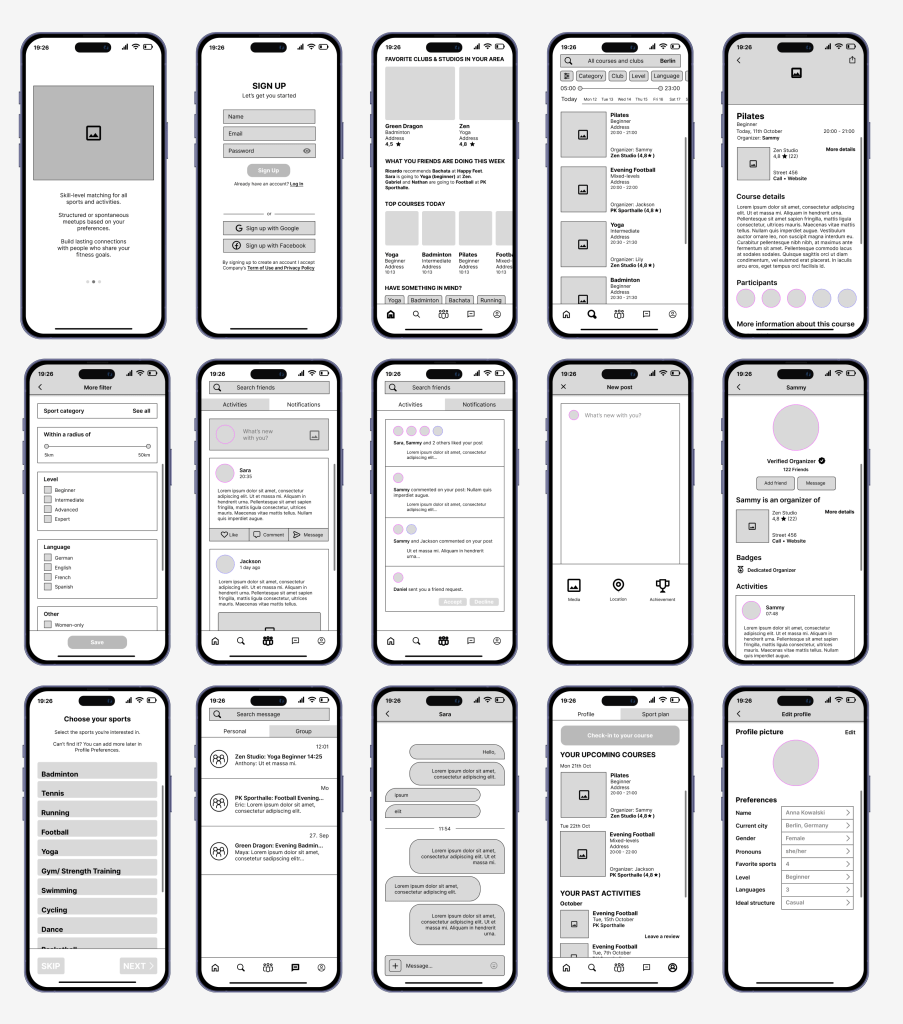 An app that lets users explore local sports activities and connect with like-minded individuals. The app provides filtering options based on sport type, skill level, event style, and other preferences, offering structured event listings, detailed participant profiles, and tools for organizing or joining activities. This ensures users feel confident, comfortable, and motivated to engage in sports while building social connections in a supportive environment.