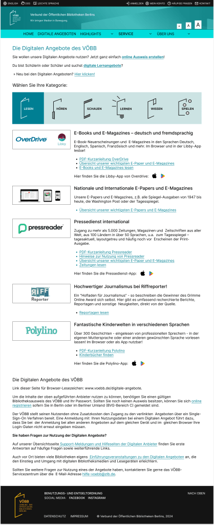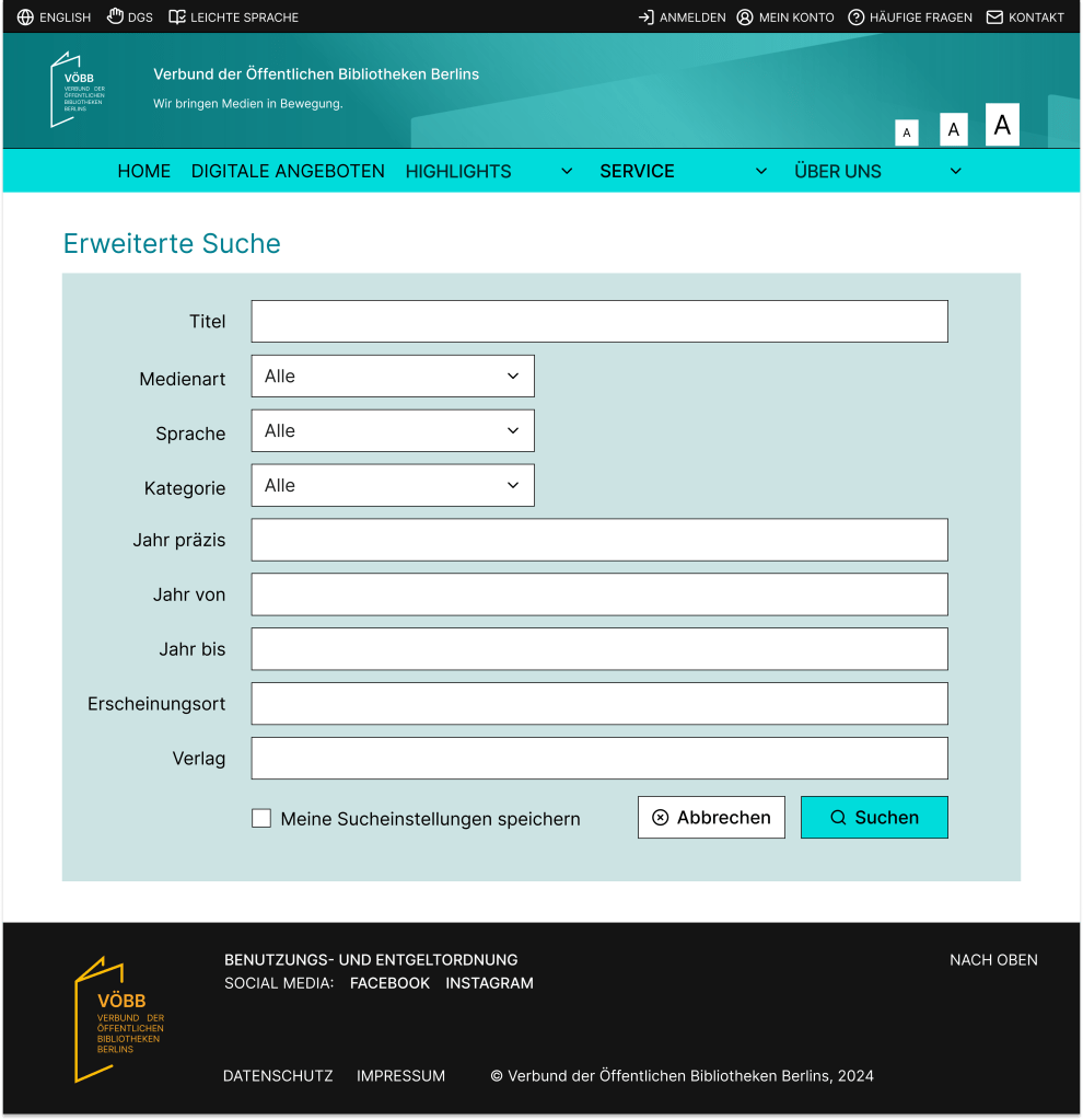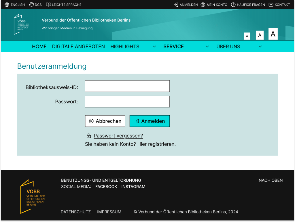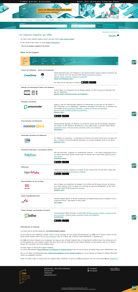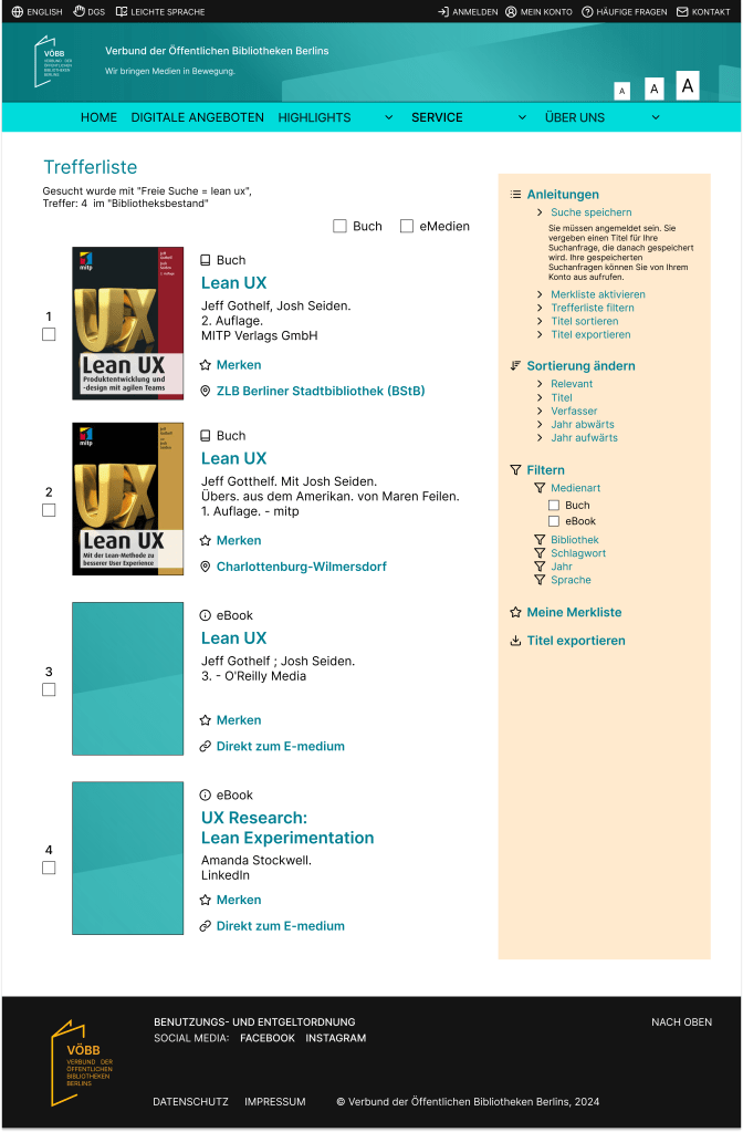 The current VOEBB.de website for Berlin’s public libraries suffers from outdated design, inefficient search functionality, and a convoluted navigation structure. These issues hinder users’ ability to quickly access library services, locate branch-specific information, and discover lesser-known features like digital services and streaming.