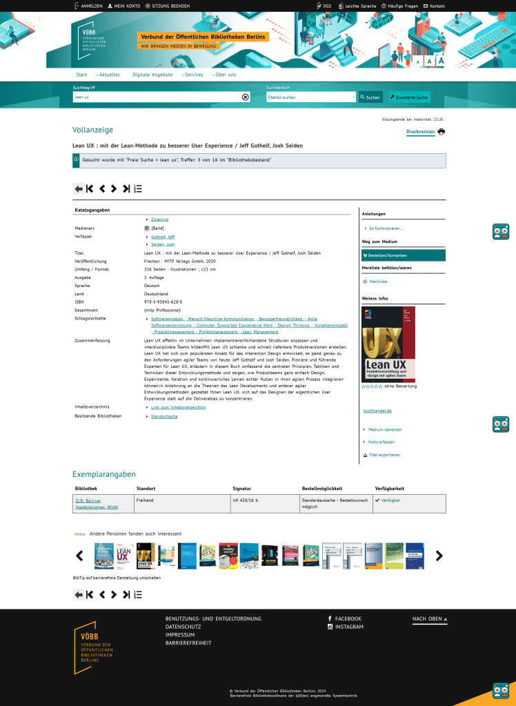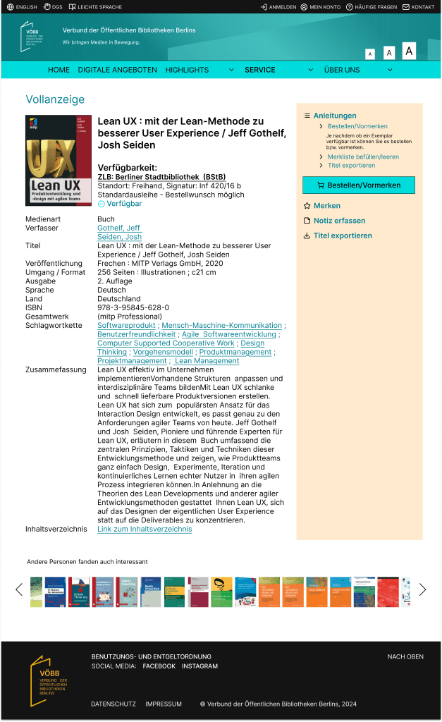 I see this as an opportunity to explore ways to enhance Berlin’s public libraries (VOEBB). Approaching this from a UI/UX designer’s perspective allows me to focus on improving the user experience and making the service more effective and engaging.