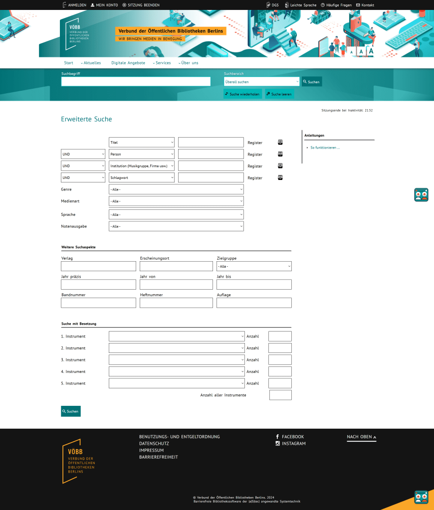 • The search function now has a prominent position in the middle of the page, followed by an introduction to VOEBB.